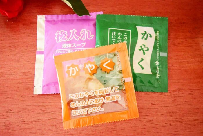 2種類のかやくと後入れ液体スープが入っていました。