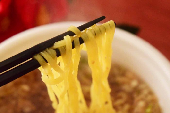 コシのあるノンフライで四角い麺はコシが強く、少し濃いめのスープとよく合っています。ただ、筆者としてはもう少し太麺でモチモチしている麺の方が良かった気がいます。