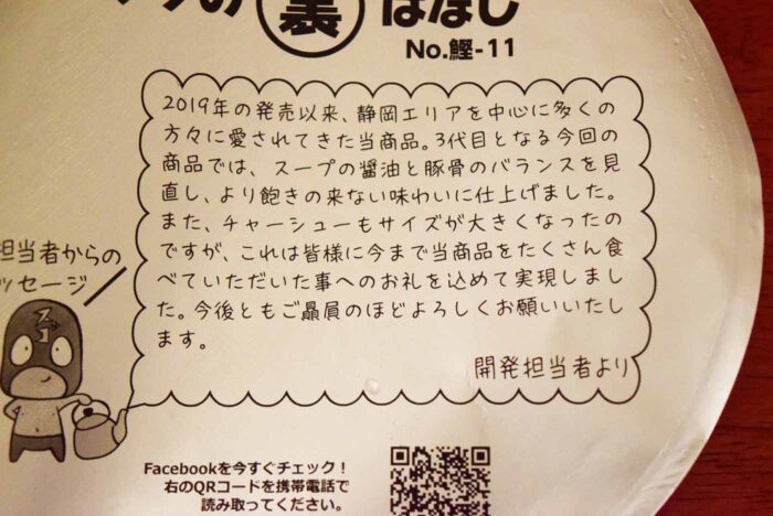 公式HPによると「かつお節の芳醇な香りと旨味が感じられる魚介豚骨醤油スープ」が魅力的で初代よりもチャーシューサイズがアップしているとの事。どんな味なのか気になりますね。早速購入してみました。