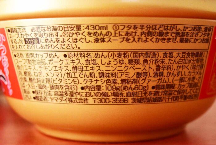 鰹節の量も多く、醤油スープと鰹節が合っていて和風醤油スープとして完成度の高いカップラーメンでした。