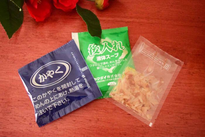 後入れ液体スープ・かやく・後入れ鰹節が入っていました。