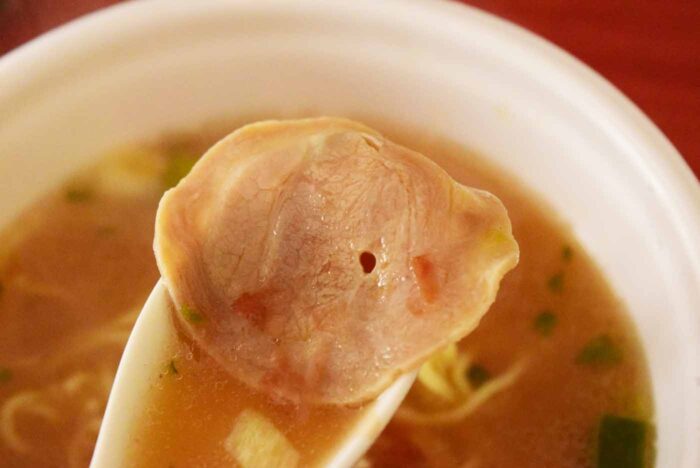 一回り大きくなったチャーシューとの事ですが、大きさの違いについてはイマイチよく分かりませんでした。チャーシューよりも一緒に入っているねぎが醤油スープと合っていました。