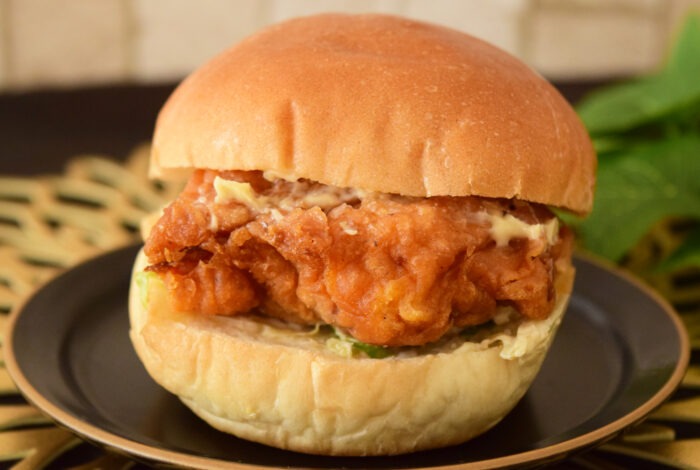 唐辛子マヨネーズはあまり辛くなく、胡椒の香りと味が強調されています。チキンはジューシーで食べ応えは抜群です。