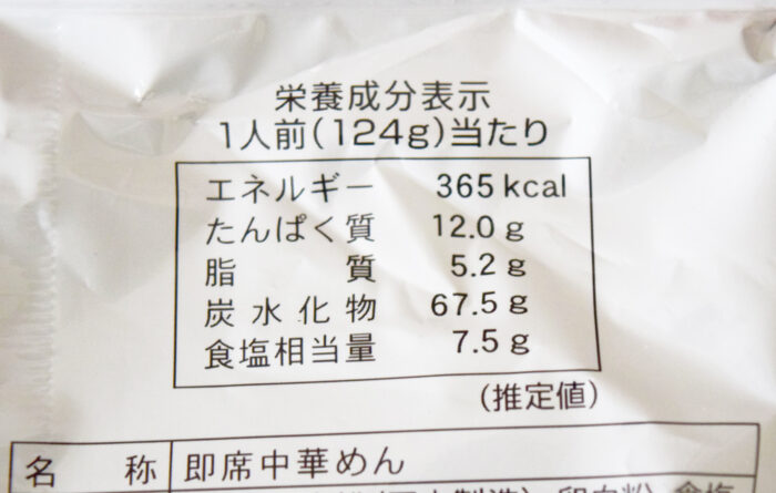 1人前(124g)当たり365kcal。食塩相当量は7.5g。