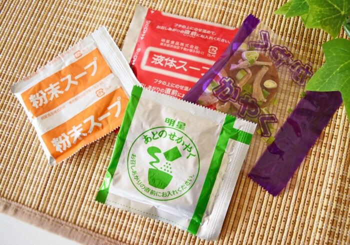 麺以外に4種類が別梱包されていました。液体スープと後入れかやくは後入れ。粉末スープとかやくは先に入れます。熱湯での調理時間は4分です。