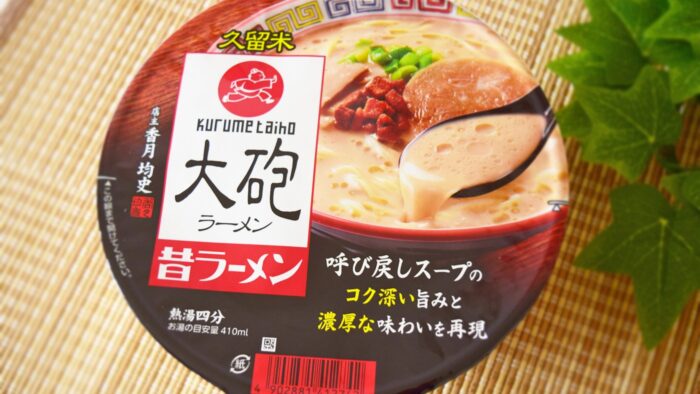 明星はそんな大砲ラーメンをカップラーメンとして再現して販売しています。大砲ラーメンでも提供している昔ラーメンを再現した丼ラーメン。豚骨を焚き上げたスープとラードが合わさったこってりラーメンとの事です。実際にどんな味なのか実食してみました。