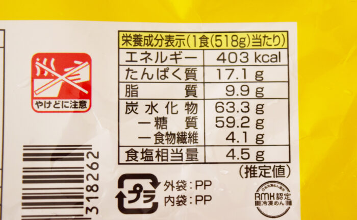 1食(518g)あたり403kcal。食塩相当量は4.5gです。