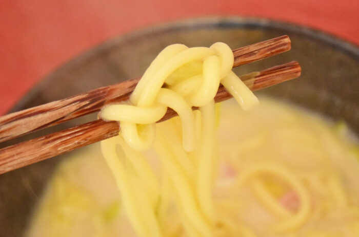 麺は太麺でもちもちしていますが、つるっとした口あたり。クリーミーなスープとの相性が良く、こちらも食べやすいですね。