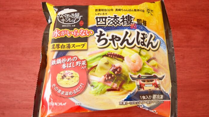 特に面白いのがお水を使わないで食べられる冷凍ラーメンです。鍋に具材を入れて、温めるだけで完成するのでラク!今回はお水を使わない冷凍ラーメンシリーズ「四海樓監修 ちゃんぽん」を紹介します。株式会社キンレイ が販売しているお水を使わない冷凍ラーメンシリーズのひとつが「四海樓監修 ちゃんぽん」です。四海樓は長崎にお店をかまえる、ちゃんぽんの名店なので、どんな味なのか楽しみですね。