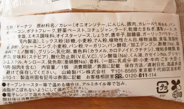 名称はドーナツなんですね。製造元は山崎製パン。