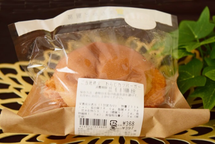 「ご当地秩父 わらじカツバーガー」は、まちかど厨房オリジナルのフィルムで梱包されています。