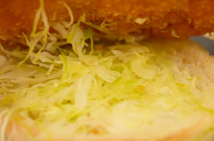 バンズをどかしてみるとかつとバンズにしっかりソースがかかっていますね。