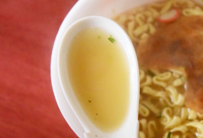 具材には焼き豚が入っています。うすく量も少ないためおまけ程度の位置づけです。