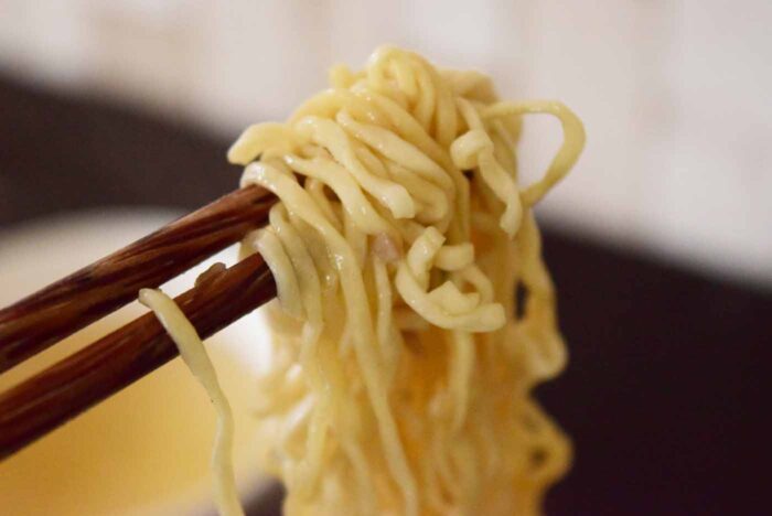 ねぎ・ごまが主な具材は量が少なくて麺がメインといえます。麺のボリュームが結構あるので具材が少なくても満足できます。