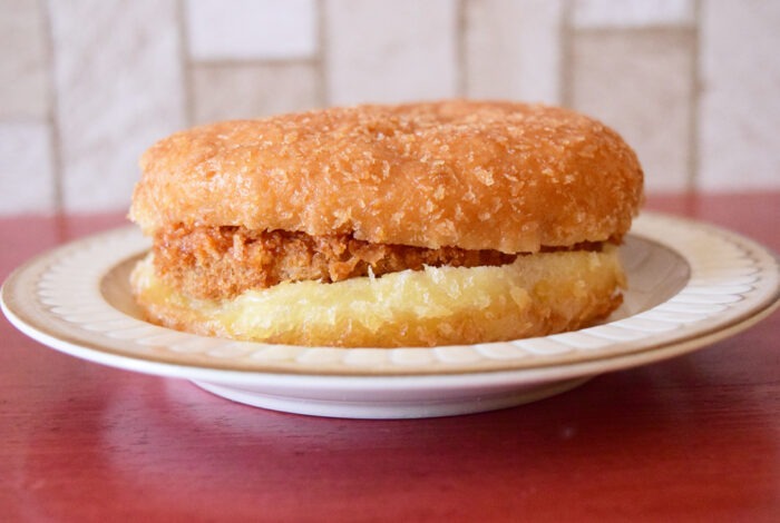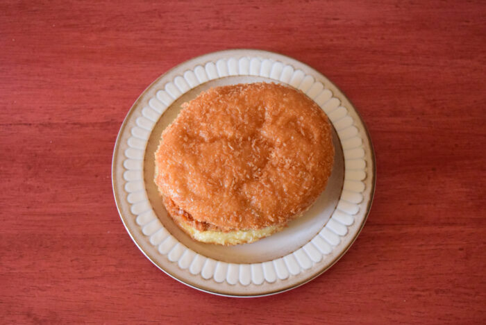 揚げパン生地の間にメンチカツが挟まっています。油分が凄そうです…