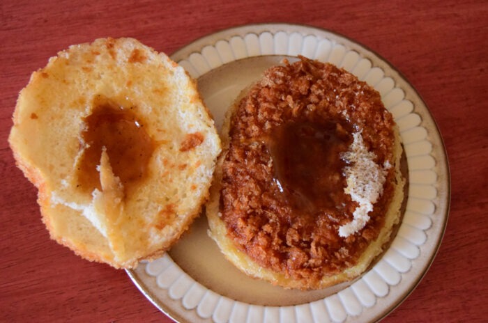 袋から取り出して軽く電子レンジで温めました。上から見るとカレーパンみたいです。
